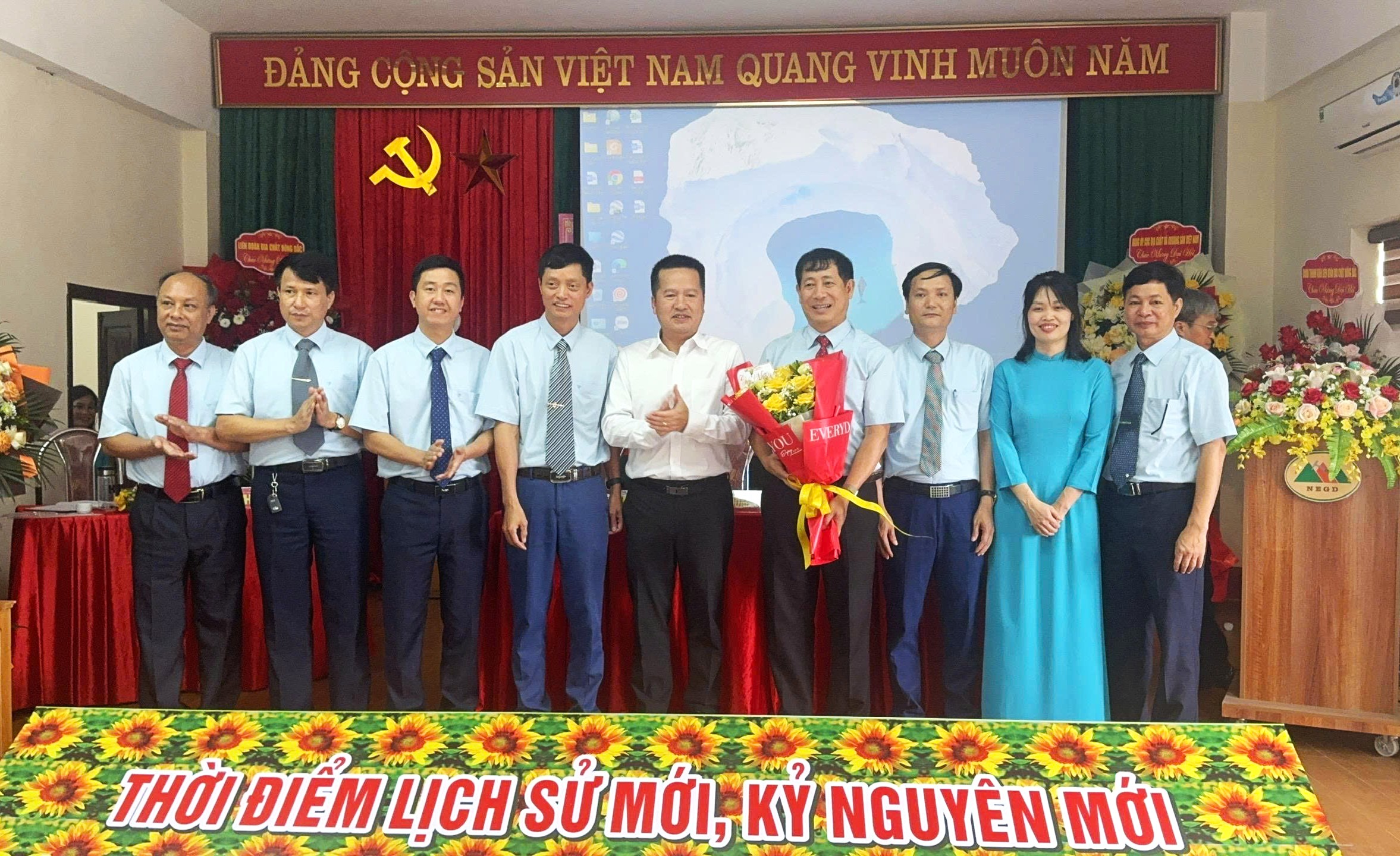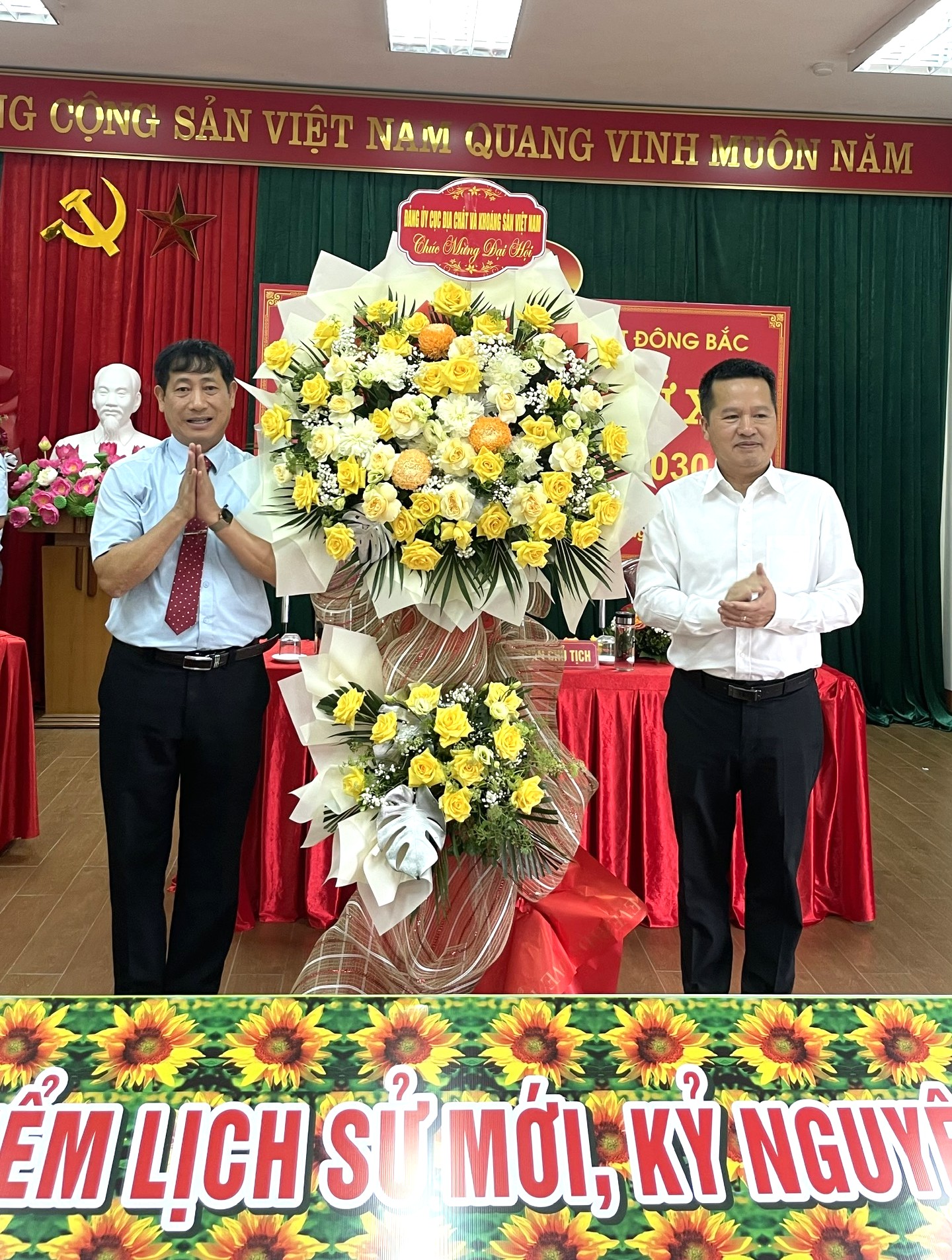 Đồng chí Lê Quốc Hùng, Phó bí thư Đảng ủy, Phó Cục Trưởng cục Địa chất và Khoáng sản Việt Nam tặng hoa chúc mừng BCH Đảng bộ Liên đoàn Địa chất Đông Bắc nhiệm kỳ 2025-2030.