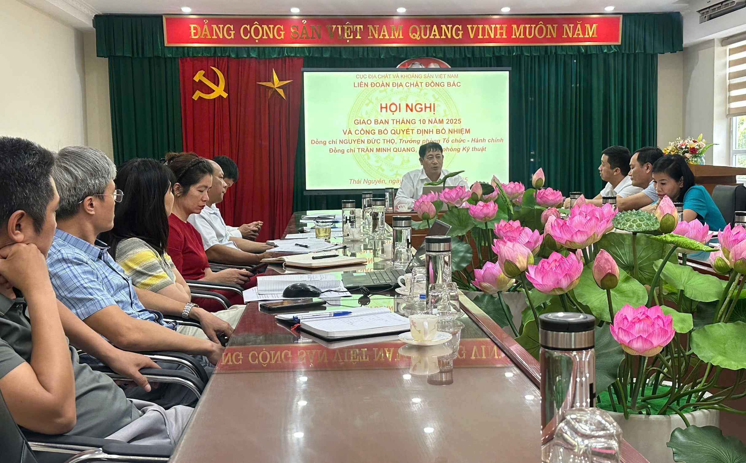 Chiều ngày 02/10/2025, Liên đoàn địa chất Đông Bắc tổ chức họp giao ban tháng 10 và công bố các quyết định bổ nhiệm cán bộ.