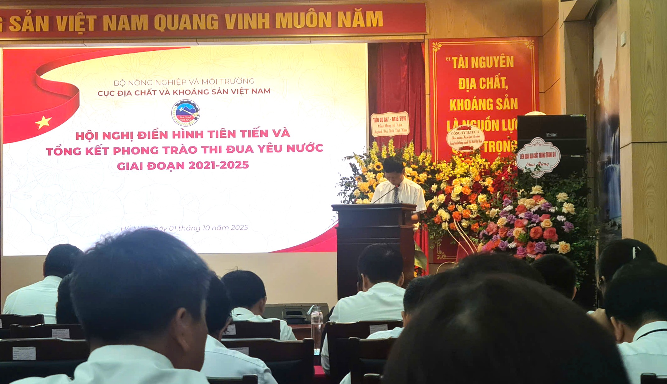 Ngày 01/10/2025, tại Cục Địa chất và Khoáng sản Việt Nam đã diễn ra Hội nghị điển hình tiên tiến và Tổng kết phong trào thi đua yêu nước giai đoạn 2021 – 2025. Đây là sự kiện chính trị quan trọng, nhằm đánh giá kết quả thực hiện phong trào thi đua trong 5 năm qua, đồng thời biểu dương, tôn vinh những tập thể, cá nhân tiêu biểu đã có nhiều đóng góp xuất sắc cho sự phát triển của ngành Địa chất và Khoáng sản.