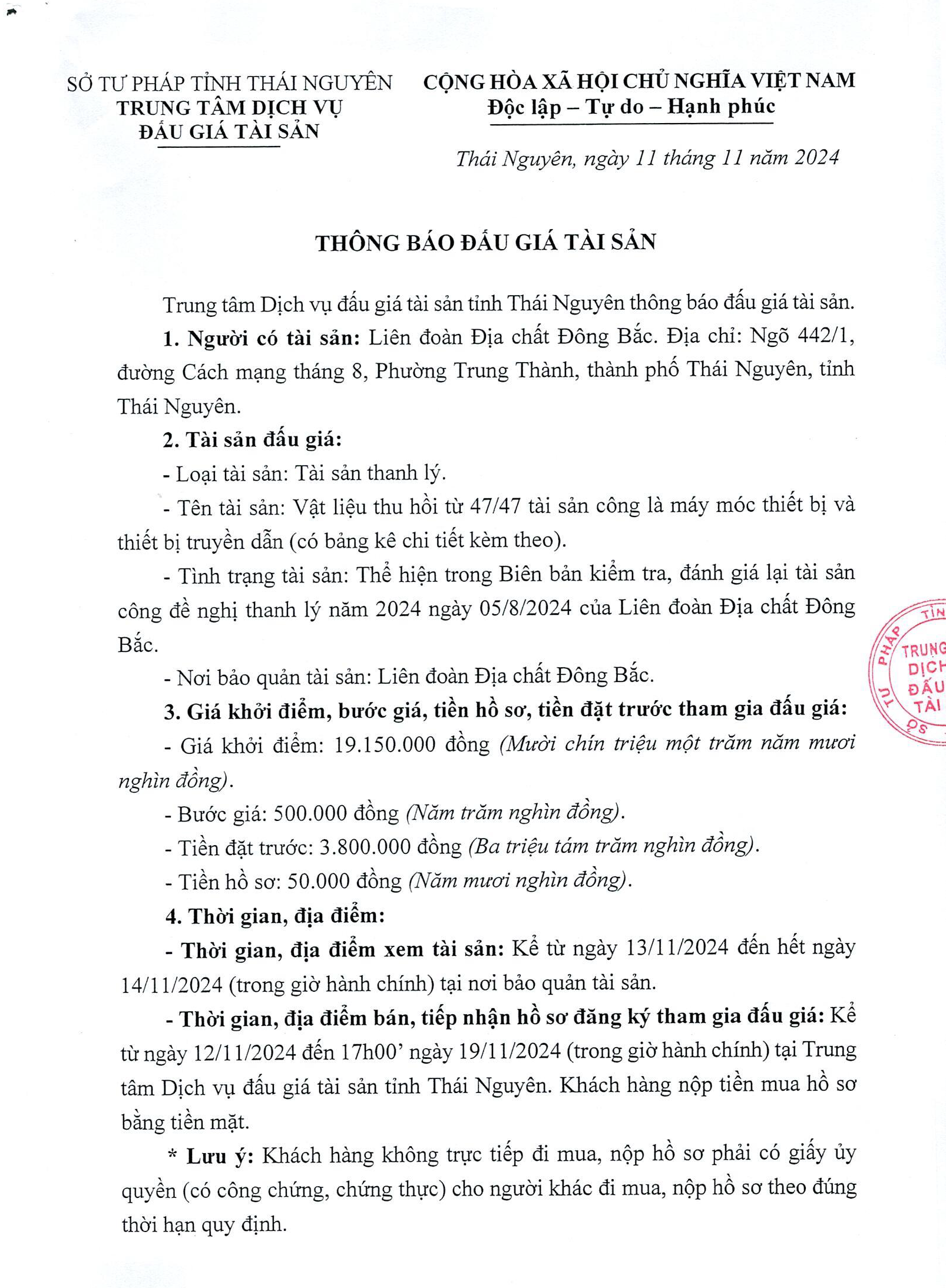 Tin tức & Sự kiện, Văn bản tài liệu Thông báo về việc lựa chọn tổ chức đấu giá tài sản Thời gian đăng: 00:57 01/10/2025 Họp giao ban tháng 10: Liên đoàn địa chất Đông Bắc kiện toàn công tác cán bộ 03/10/2025 Đồng chí Nguyễn Văn Tưởng được Bộ Nông nghiệp và Môi trường tặng Bằng khen 02/10/2025 Liên đoàn Địa chất Đông Bắc: 6 đồng chí tiêu biểu được khen thưởng tại Hội nghị điển hình tiên tiến 01/10/2025 Đại hội Đảng bộ Liên đoàn địa chất Đông Bắc lần thứ XV, nhiệm kỳ 2025 – 20230 01/10/2025 QĐ Về việc công bố công khai dự toán ngân sách năm 2025 của Liên đoàn Địa chất Đông Bắc 30/09/2025 QUYẾT ĐỊNH về việc công bố công khai quyết toán ngân sách năm 2024 của Liên đoàn địa chất Đông Bắc 30/09/2025